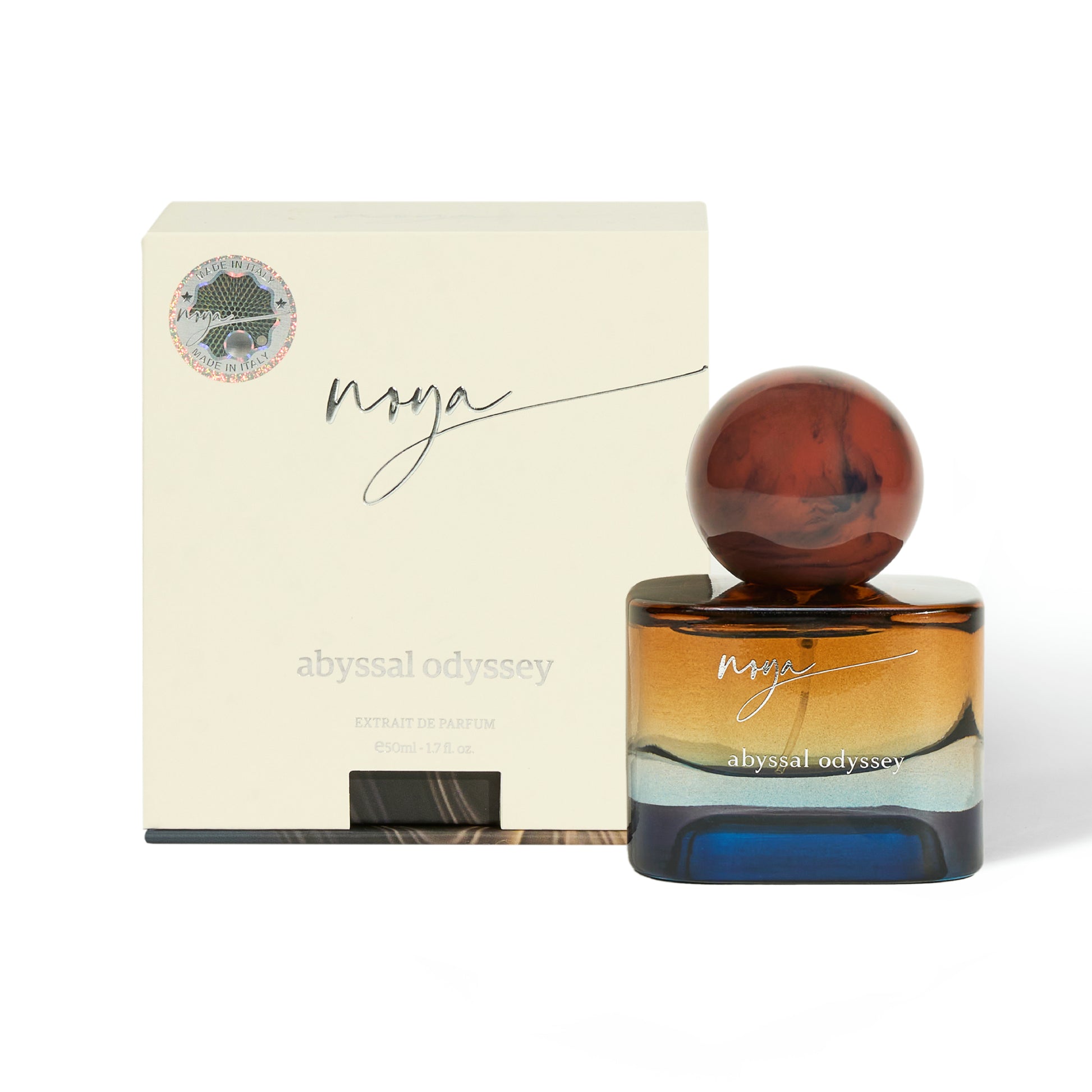 Abyssal Odyssey as a fragrance explores into the ocean's depths with a charming complexity of the rare ambergris and cool aquatic notes. This fragrance pays tribute to the mysterious beauty of the ocean’s hidden realms, featuring elements of ambergris, jasmine, and clary sage.